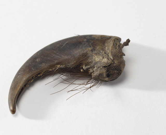 The collection of the National Museum of Finland include many parts of animal bodies that have been used as magic objects. The most common species of animal in this respect is the brown bear (Ursus arctos). It is the only native species of bear in Finland. The bear has a special place in the mythology of the area and thus it is not surprising that it also had a significant role in magic practices.