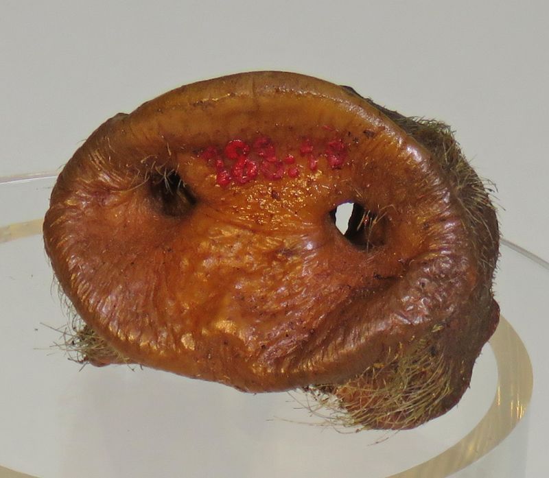 In the previous post about wooden gnarls used for healing skin diseases, a folklore example also mentioned that healing could be done with the snout of a pig. The magic objects collection of Finland’s National Museum includes mostly parts of wild animals, but the domestic pig is one common exception to this rule. Parts of this animal that were useful are the tusks and the snout.