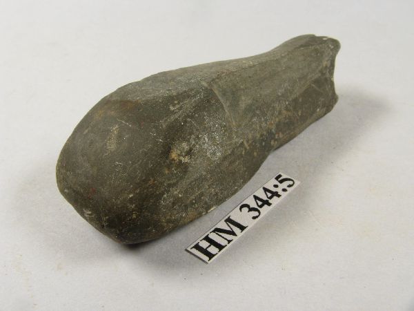 This Stone Age chisel has been used as medicine against different diseases up to the year 1908. It has been heavily scraped as a result of this use. Tampere museums.